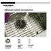 ACCESSORIES INCLUDED - Includes Basket Strainer, center 3-1/2" drain opening, and optional custom accessories like Bottom Grid (BG-3100) for enhanced kitchen utility.