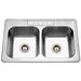 Houzer Glowtone Series 33" Stainless Steel Drop-in Topmount 50/50 3-hole Double Bowl Kitchen Sink - 3322-8BS3-1