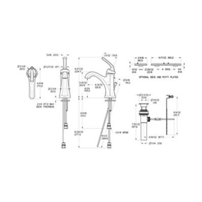 - Bath: lav faucets, tub/shower valves and trim, drains and traps
