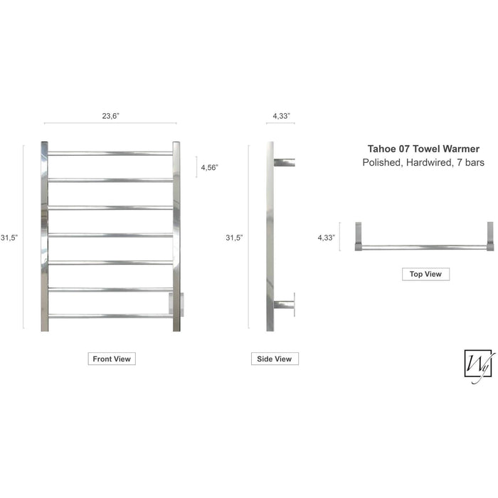 WarmlyYours - TWS2-TAH07PH - Elevate Tahoe 07 Towel Warmer, Polished, Hardwired, 7 bars