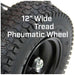 - Tires and accessories: 12-inch pneumatic, wide-tread tires move over uneven ground; rain/snow cover and grate included