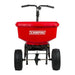 Chapin’s 8303C contractor broadcast turf spreader has a weather-proof, 1-piece hopper supported on a rugged powder-coated steel frame. Spread comfortably and efficiently with a rubber-gripped t-handle and solid steel linkage gate control. The rotary gate is adjustable to accommodate a variety of materials and is designed with a cast zinc-plated agitator to help prevent clumping. Chapin Contractor Turf Spreaders feature directional spread pattern control to ensure material is applied where it is needed. Metal gears are enclosed to prevent debris interference. This heavy-duty turf spreader is equipped with rugged wide tread 12-inch pneumatic tires for professional use. A rain cover and hopper grate are included. This unit not recommended for use with sand and sand mixes. Made in the USA with global materials.