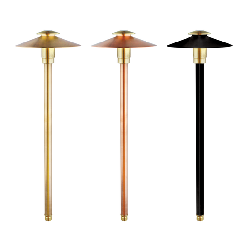 Path lights guide walkways and garden edges with comfortable, low-glare illumination. Choose low-voltage 12V fixtures for easy landscape wiring, in styles from classic hat shades to modern domes and sleek bollard-style posts.