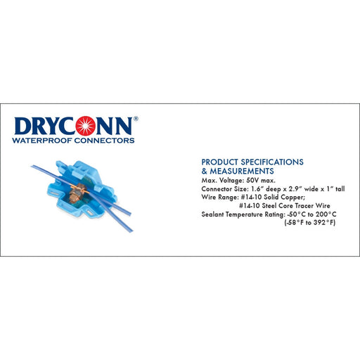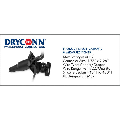 King InnovationOriginal price $ 0.00 - Original price $ 0.00Original price $ 0.00$ 16.99$ 16.99 - $ 16.99Current price $ 16.99| /Spec Sheet DryConn® Black Series Outdoor Irrigation Wire Connectors FEATURES & BENEFITS: UL Listed 600V for dry, wet or above/below grade appl...