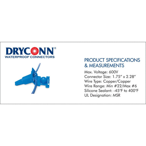 King InnovationOriginal price $ 0.00 - Original price $ 0.00Original price $ 0.00$ 61.23$ 61.23 - $ 61.23Current price $ 61.23| /Spec Sheet DryConn® Black Series Outdoor Irrigation Wire Connectors FEATURES & BENEFITS: UL Listed 600V for dry, wet or above/below grade appl...