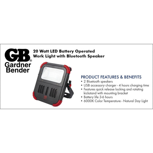 Spec Sheet GB brings together two of the most popular technologies into one easy to use portable device. The new GWL-20BT 20-Watt LED Work Light p...