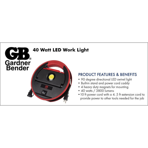 Spec Sheet GB's 40-Watt Multi-Task Work Light combines multiple features to suit the needs of nearly all applications. The GWL-40 includes a 10 ft...