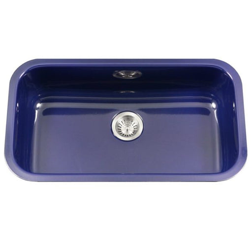 Hamat CER-3221S-NB Fregadero de cocina de un solo tazón de acero esmaltado bajo encimera, color azul marino