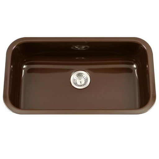 Hamat CER-3221S-ES Fregadero de cocina de un solo tazón de acero esmaltado bajo encimera, color espresso