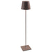 Adjustable height: 27/ 43 / 59 inch. Features color-select 2700K-3000K color temperature (470-500 lumens). Contact charging base included. Approximately 15 hours illumination. Charging time approximately 20 hours. Touch dimming. Suitable for indoor and outdoor (IP54) use.