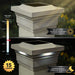 The elegant low profile design of the patented Majestic Solar Post Cap will add beauty and elegance to your fence, deck or garden. Four surface mount LEDs are strategically positioned to cast a brilliant white light downward onto the surrounding area creating a unique ambience. Manufactured from durable, vinyl (PVC) the Majestic will not fade, crack or yellow. Our thorough quality control guarantees many years of dependable performance. Will fit over an actual 5" x5" Post.