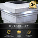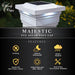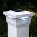 The elegant low profile design of the patented Majestic Solar Post Cap will add beauty and elegance to your fence, deck or garden. Four surface mount LEDs are strategically positioned to cast a brilliant white light downward onto the surrounding area creating a unique ambience. Manufactured from durable, vinyl (PVC) the Majestic will not fade, crack or yellow. Our thorough quality control guarantees many years of dependable performance. Will fit over an actual 5" x5" Post.
