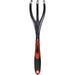 Ergonomic poly grip with finger guard and anti-slip thumb rise. Cast aluminum body. Penetrate soil easily with tapered cast aluminum tines. U.S. patent D582,227.