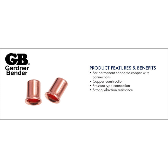 Conecte cables de cobre con los conectores de engarzado de cobre. Estos conectores ofrecen una fuerte resistencia a las vibraciones y están clasificados para uso hasta 600 voltios.
