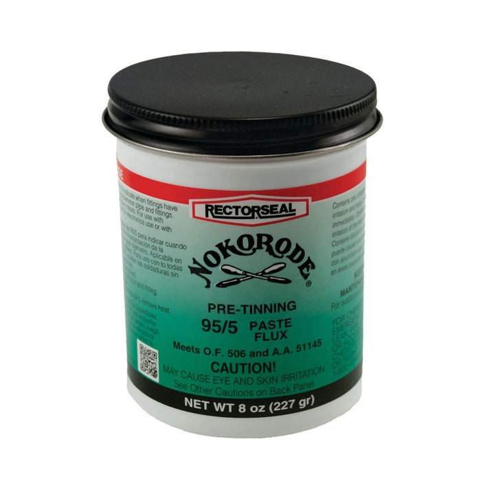 Nokorode Pre-Estañado Paste Flux es una pasta suave y cremosa formulada específicamente con una pequeña cantidad de polvo de soldadura de estaño/antimonio 95/5 en la fórmula y un indicador de calor. Está formulado para limpiar, pretintar y fundir la junta, todo al mismo tiempo.