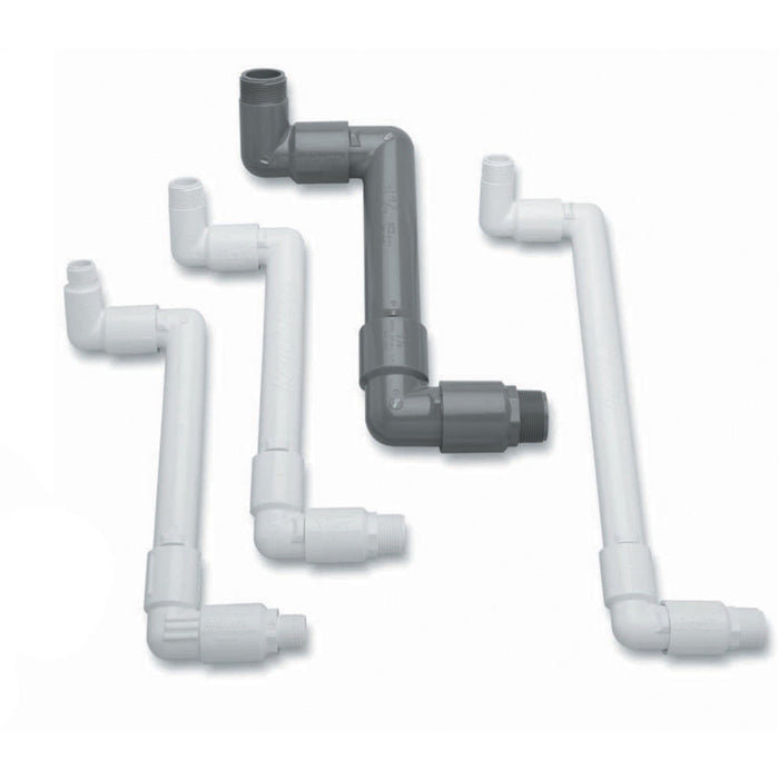 Las juntas articuladas serie TSJ conectan aspersores o válvulas de acoplamiento rápido de ¾” (1,9 cm) y 1” (2,5 cm) a tuberías laterales. Esto permite un fácil ajuste del cabezal a la pendiente para evitar que los cabezales o las tuberías se rompan cuando el equipo los atropelle.