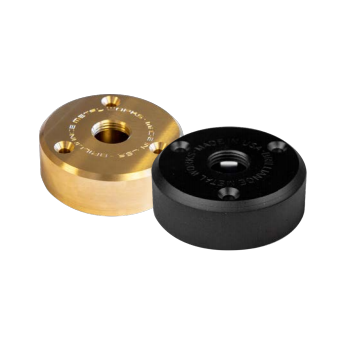 The Brilliance Metal Works deck mount is made from solid round aluminum or brass stock. It is machined through a CNC computerized process making it a virtually flawless design. Three mounting holes allow the canopy to be installed evenly on any hard-flat surface. A cable relief slot is located on the bottom side of the mount. Designed with a 1/2” NPT female thread and accepts all Brilliance metal works stem and knuckled fixtures