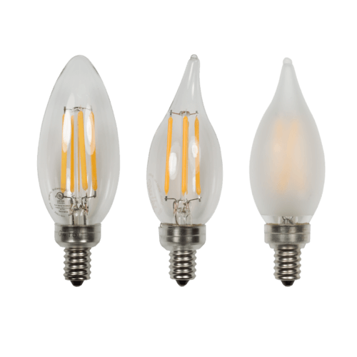 DESCRIPTION The Brilliance LED 120VAC Candelabra Edge Filament lamps are a decorative light source and give the effect of an original Edison lamp, making them great for indoor chandeliers and anywhere a warm light source is desired.