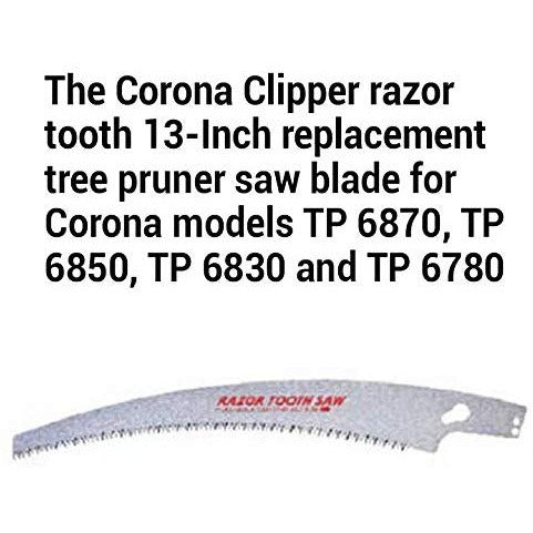 - The Corona Clipper razor tooth 13-Inch replacement tree pruner saw blade for Corona models TP 6870, TP 6850, TP 6830 and TP 6780