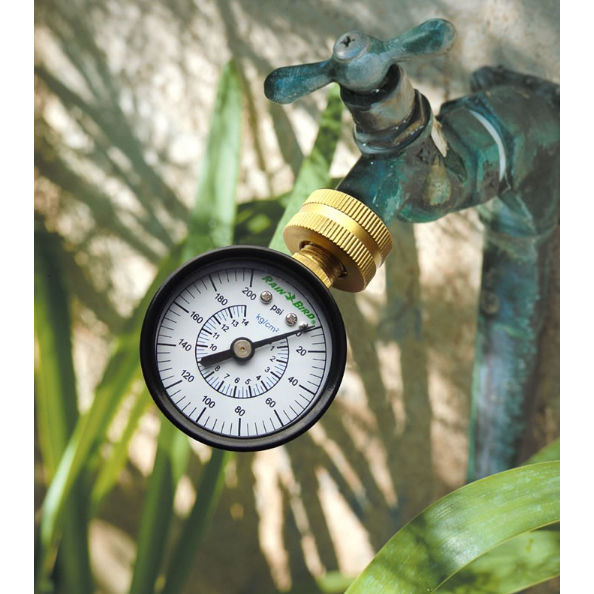 Pressure gauge to take an accurate measure of static water pressure. Ideal to measure water pressure before underground irrigation design and during installation. Features a brass coupling for durability, clear display that allows accurate readings, and pressure reading from 0 to 200 psi (pounds per square inch). Designed for residential installation use. 3/4-inch female hose thread adapter attaches directly to faucet or hose.Use for measuring your water pressure before design and during installation.