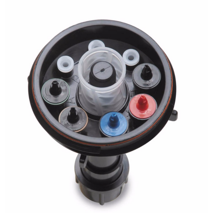 - Each port accepts a Xeri-Bug™ Emitter or PC Module for independent flows from 0.5 to 24 gph (1.89 to 90.84 l/h) or use a self-piercing barb connector (SPB-025) for unrestricted flow